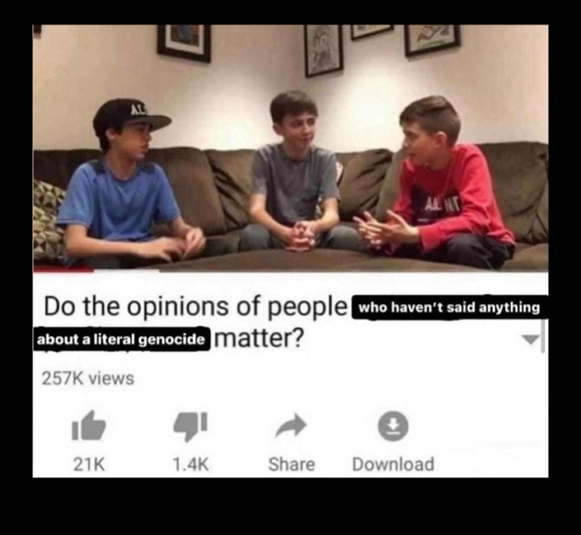In the past five years, there’s been ongoing discourse ad nauseum about “performative” activism, about the weight words like Smith’s carry. She seems to believe they’re irrelevant, meaningless muck despite using over 2000 of them to say so. I’m here to tell you they are in fact heavy, and they are in fact significant, especially in this country where consuming propaganda is only second to creating propaganda as our favorite pastime. Think of the domino effect one single person in the spotlight often makes. Take for example Ryan Trahan, that YouTuber whose content is so saccharine it toes the line between wholesome and unnerving, who is on a cross-country journey to raise funds for St. Jude, a noble cause. Staple Games, an app developer, promised to match a dollar for every download made by one of Ryan’s followers. To date, they’ve contributed $815,642 to his campaign — meaning nearly 1 million downloads on account of Ryan’s passing suggestion. Imagine if that influence, that pressure, was also applied in such mass on our government to end our financial and rhetorical support for israel’s war machine. Sure, it might take years for these cinderblocks in office to budge, but moving the needle is better than stagnation. Furthermore, when the population currently enduring a genocide is asking you to call attention to their plight, to post their GoFundMes, to share stories of their loved ones, to tell the world they existed and have existed for millenia, the entire conversation around performance kind of goes out the window anyway.